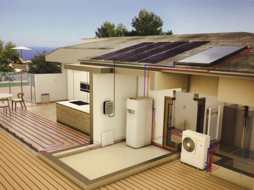 Bu sayede çok az bir enerji harcaması ile maksimum düzeyde ısıtıp soğutur.( yerden – duvardan ısıtma , yerden duvardan soğutma , fan-coil soğutma )